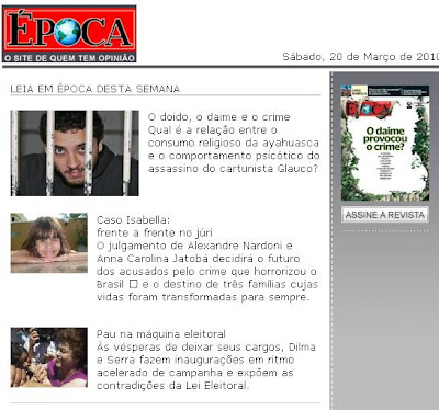 Deu o que eu já imaginava: o assassinato do cartunista Glauco acabaria levando a imprensa a questionar o uso do chá do Santo Daime. A revista Época que sai às bancas hoje, coloca em foco essa discussão.