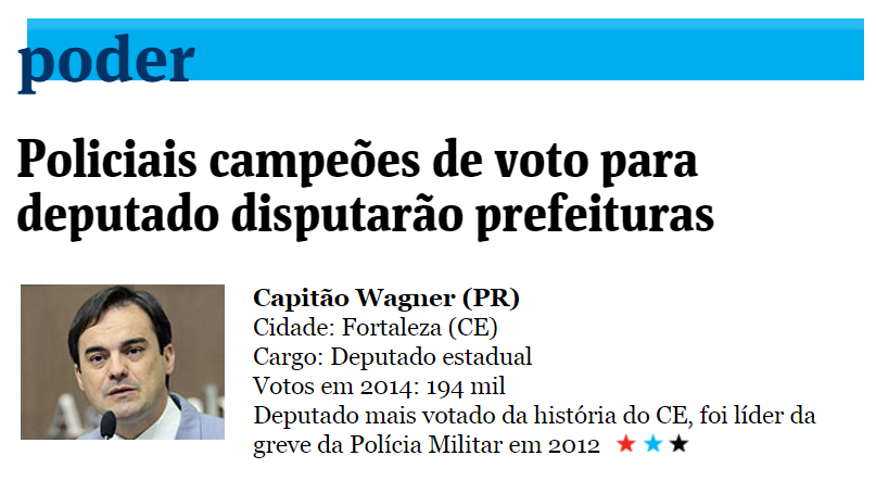 JORNAIS. Folha destaca policial candidato em Fortaleza