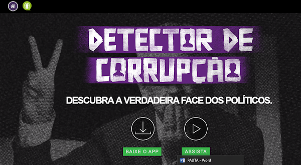 Tem um aplicativo, o Detector de Corrupção, no qual você baixa a foto de um político, e ele revela se ele é corrupto ou não.